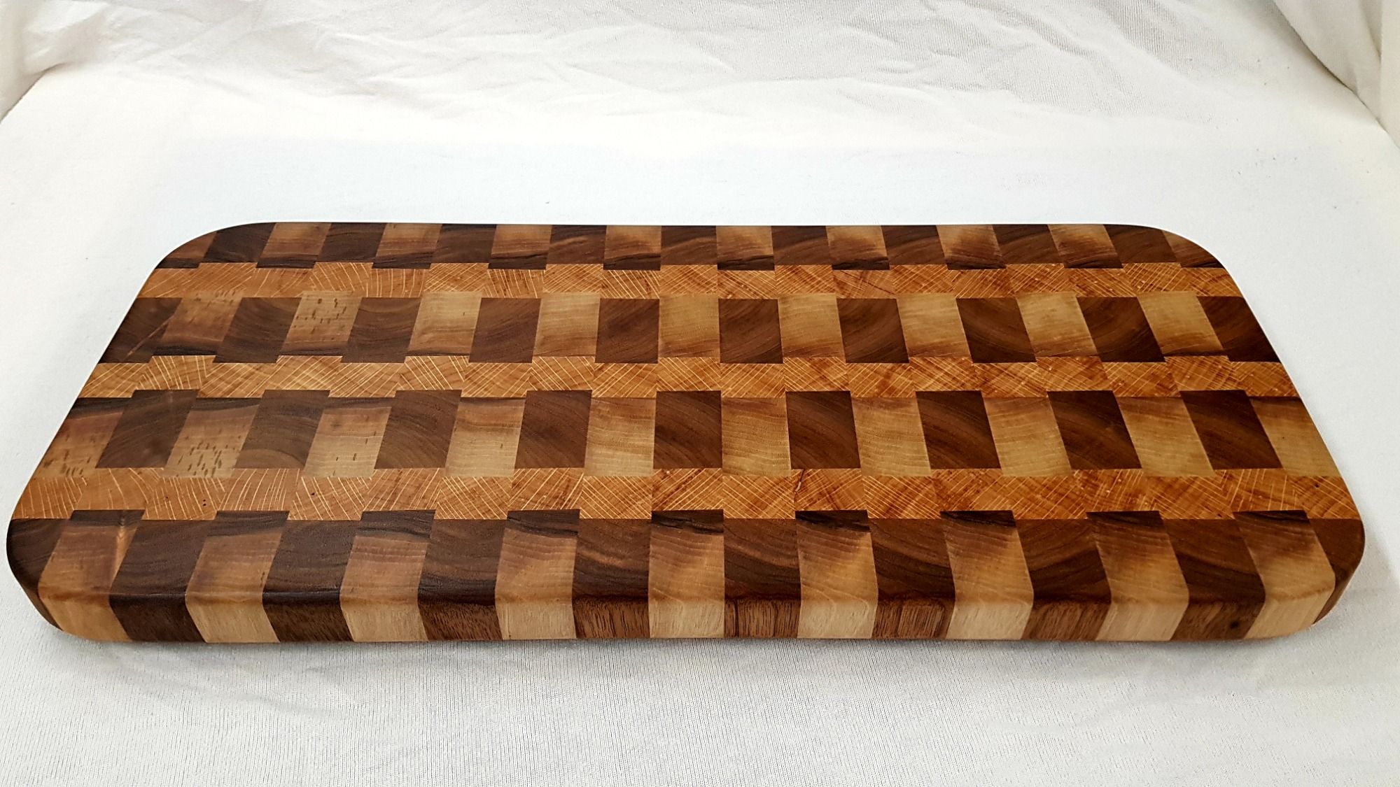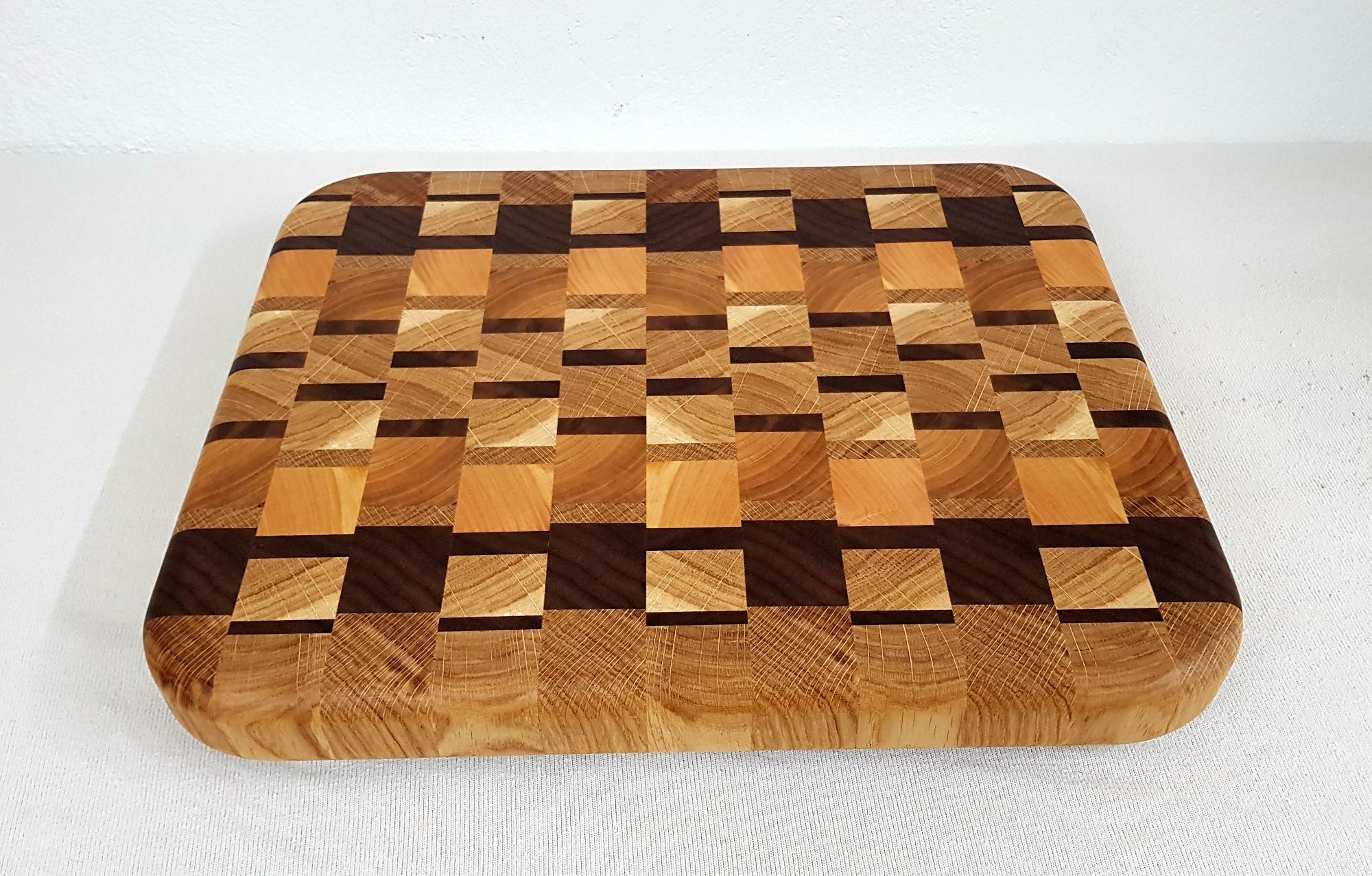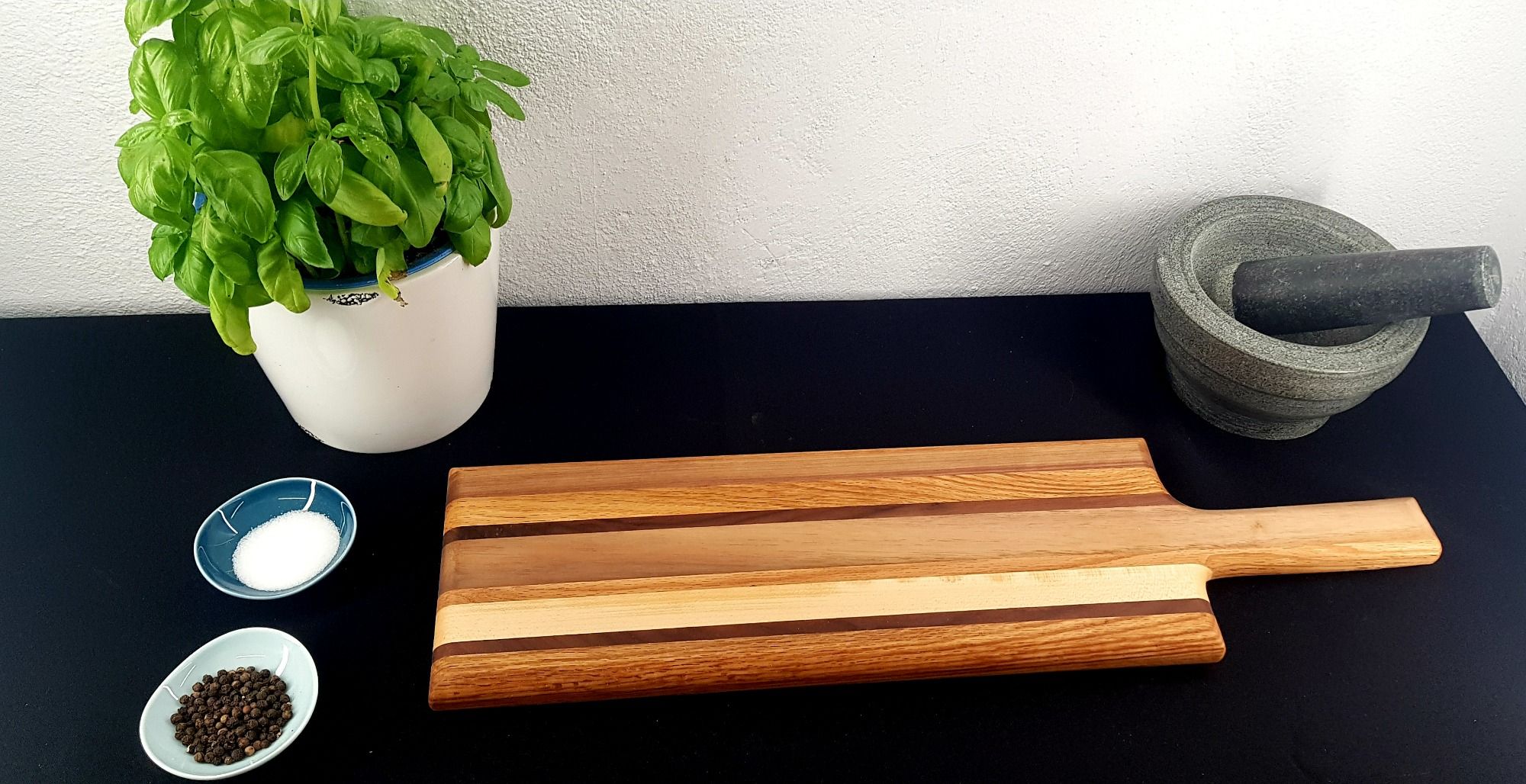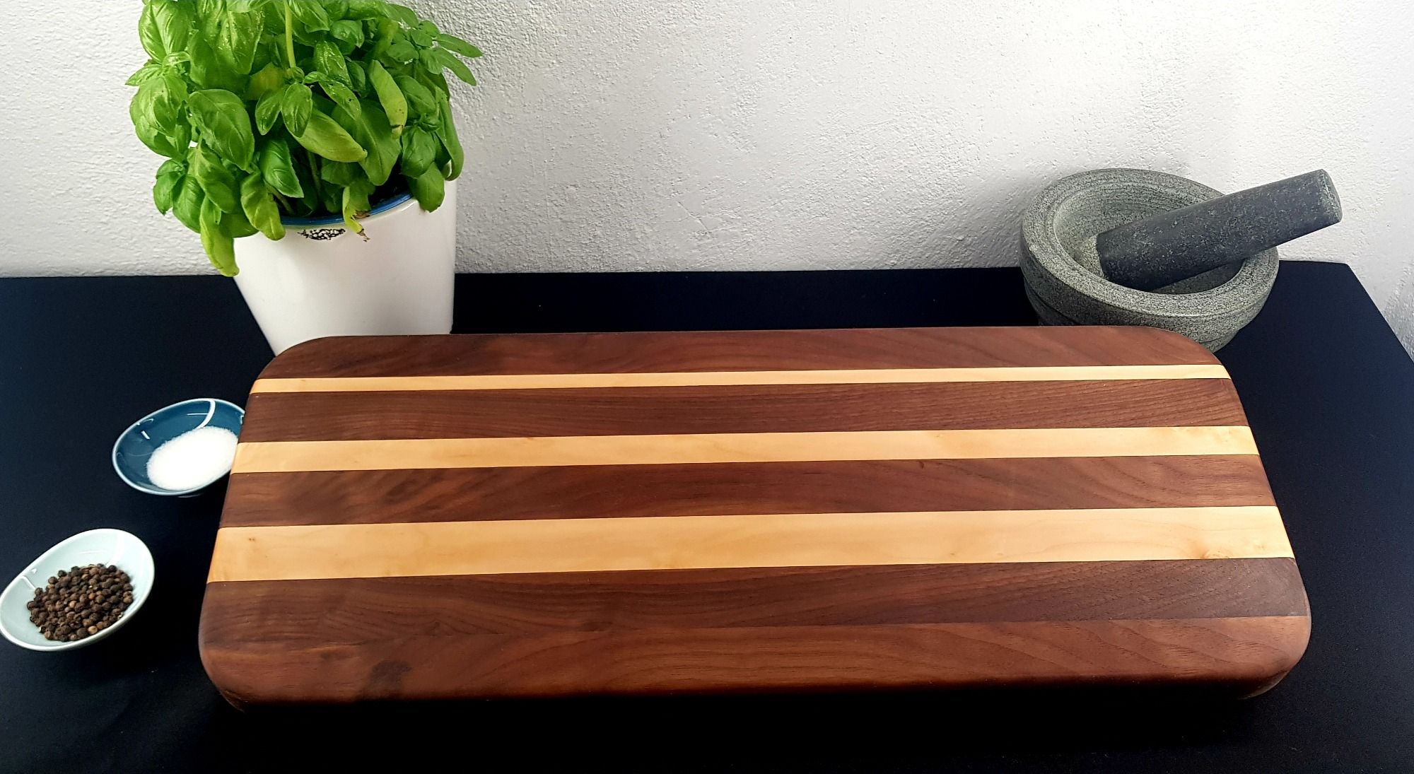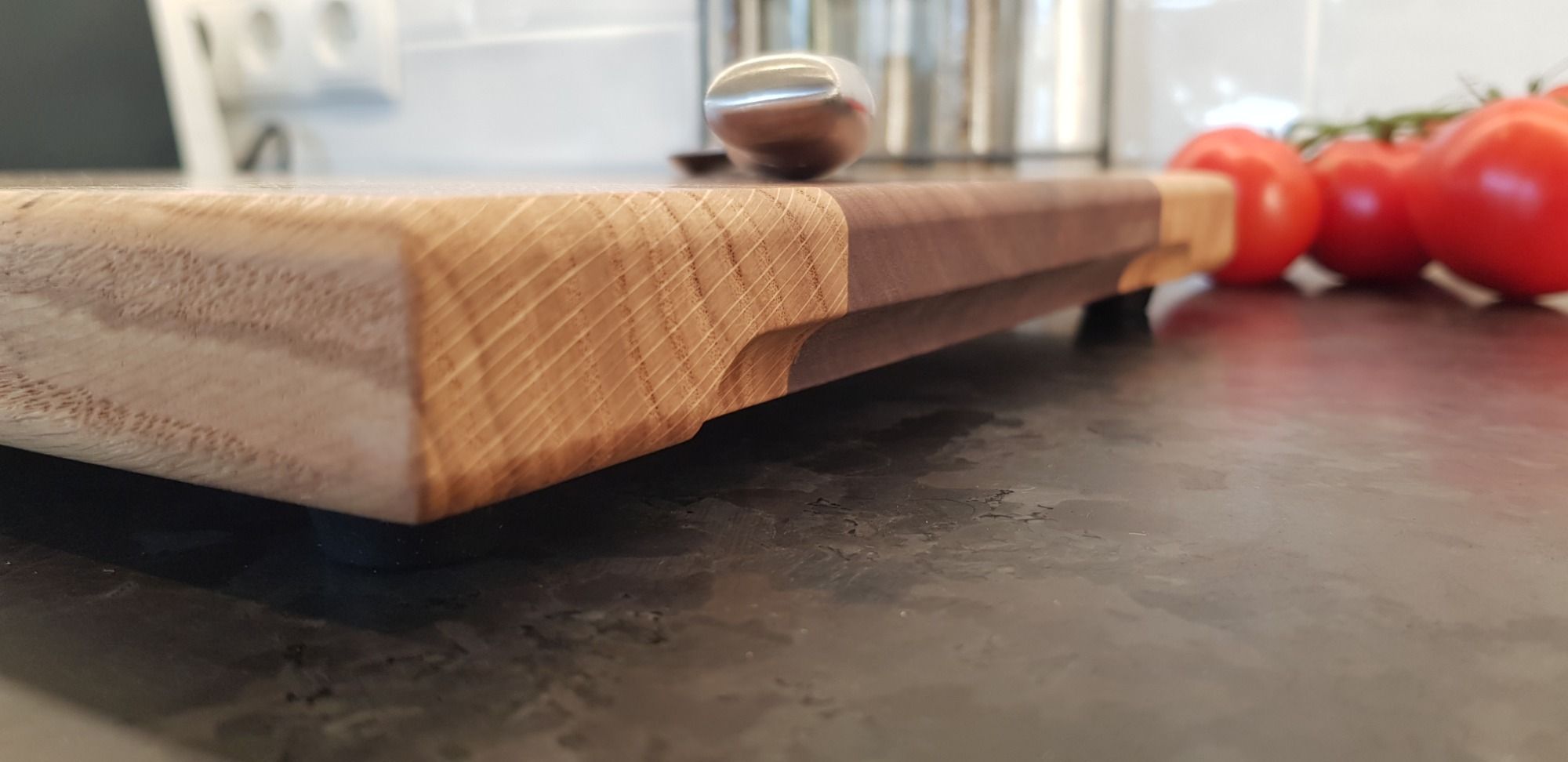 Neben Ess-/Schreib- und Couchtischen lassen sich aus Holz auch wunderbare Küchenhelfer bauen. Die Schneidbretter werden als rohe Bohle so bearbeitet dass ein echter Hingucker für das Arbeiten in der Küche herauskommt. Neben unterschiedlichen Hölzern lässt sich mit der Form und Endbearbeitung spielen um eine individuelle Schneidunterlage zu bekommen. Dass so ein Brett an Langlebigkeit nicht zu übertreffen ist liegt an der Materialstärke und der damit verbundenen Möglichkeit die Oberfläche abzutragen - so hat man im Nu ein "Neues" Brett.