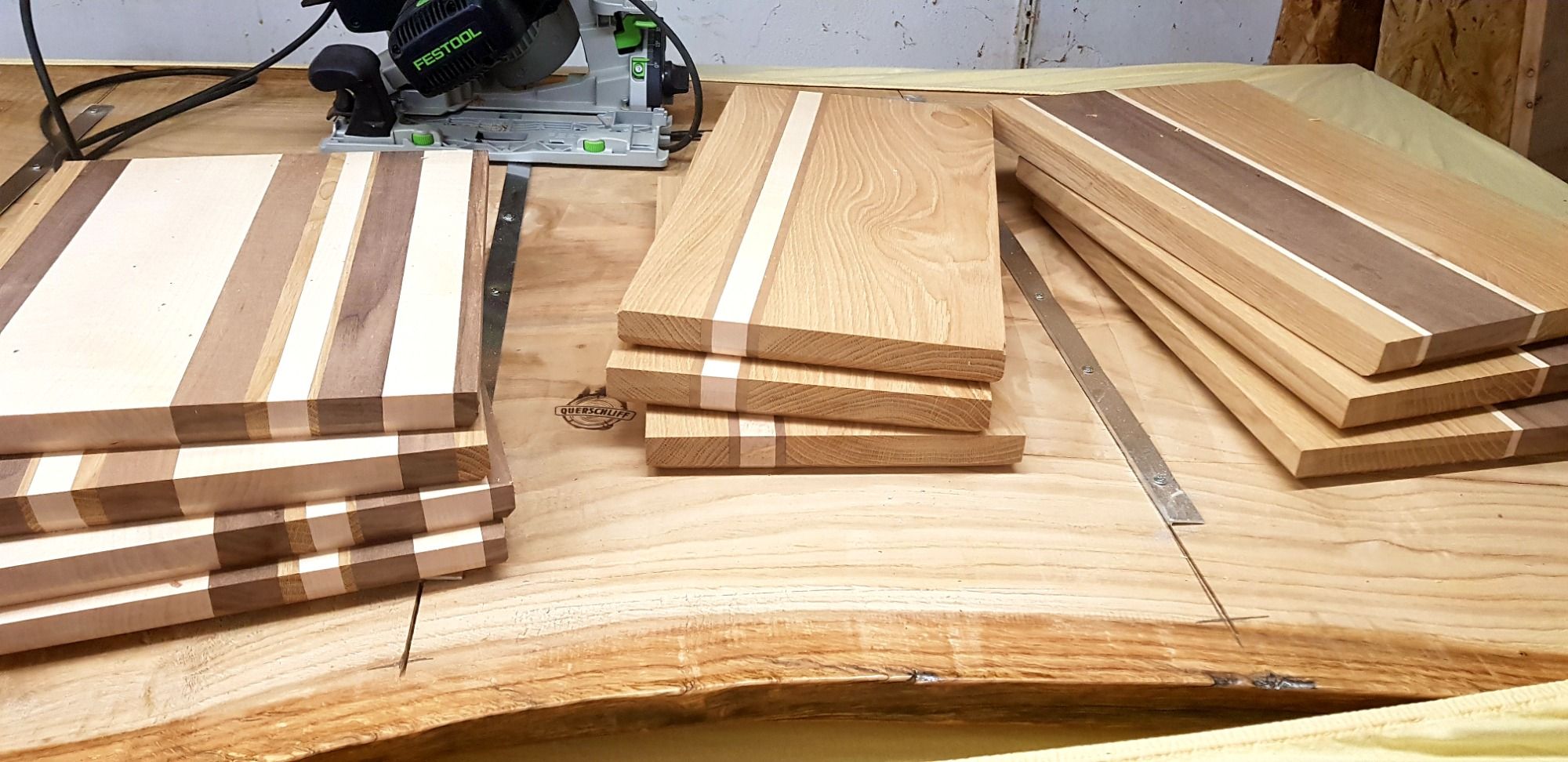 Die hergestellten Schneidbretter werden aus Hölzern von regionalen Partnern hergestellt und jedes für sich ist ein Unikat.